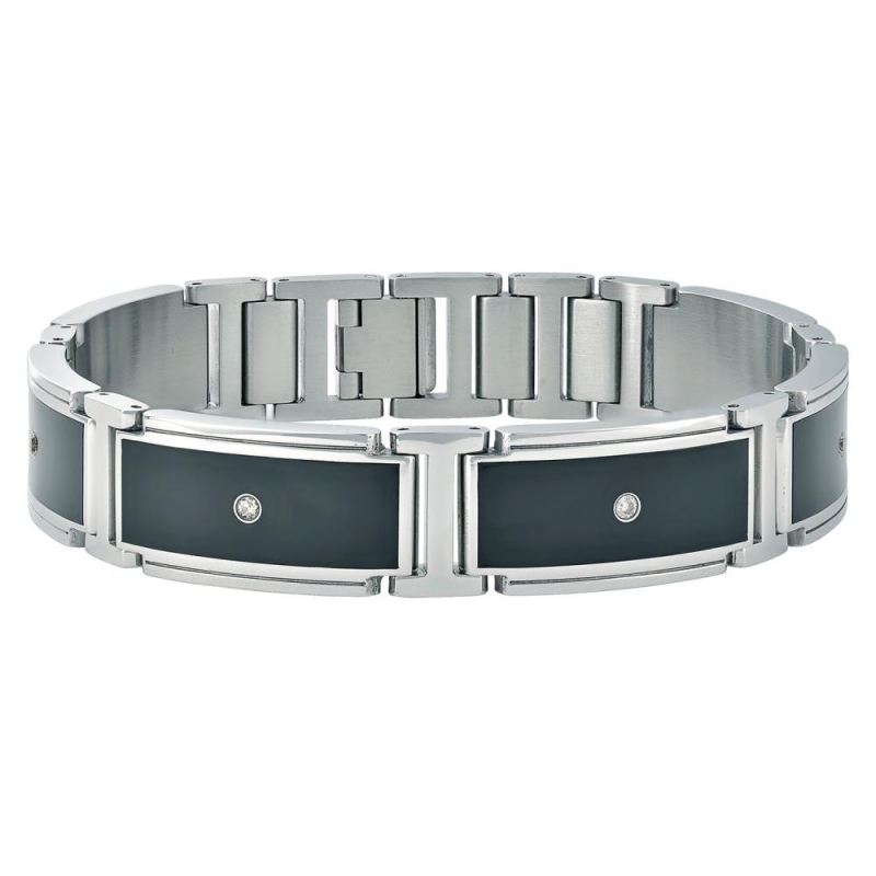 Men’s Stainless Steel Diamond Bracelet with Black Enamel.
