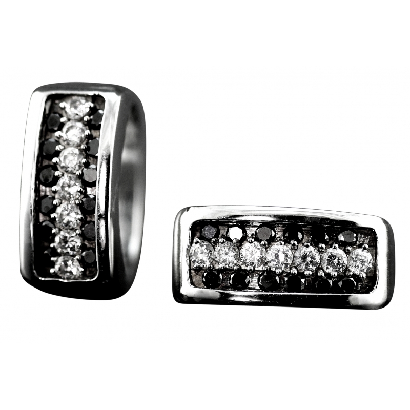 Three rows of 12 black diamonds and 7 white diamonds pave set in the top center. Graduated shank with a high polished mirror finish.