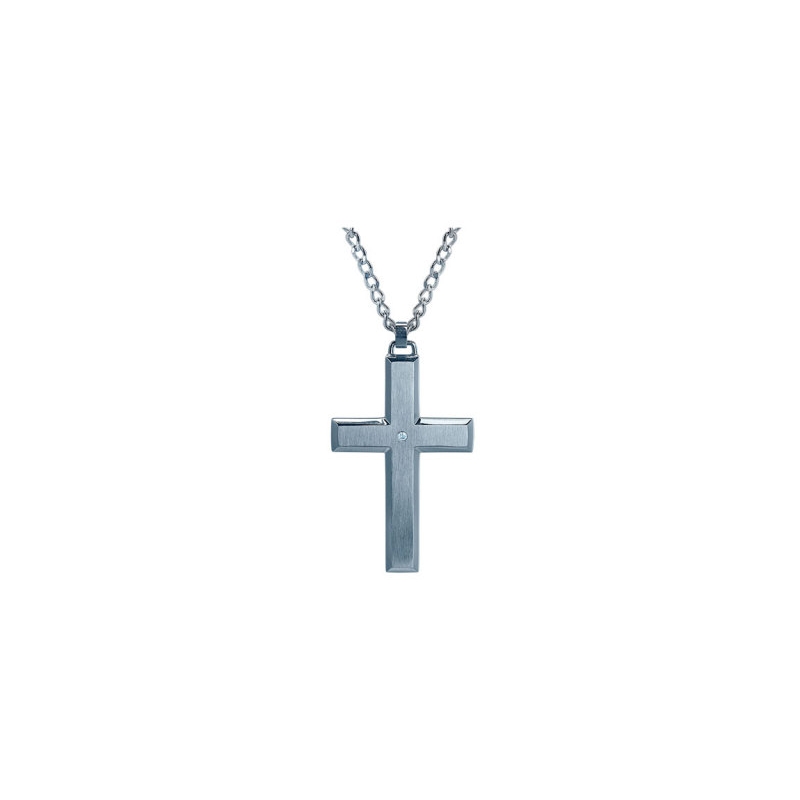 Stainless Steel, Round Brilliant Cut Diamond Cross Pendant with 24″ Curb Chain.