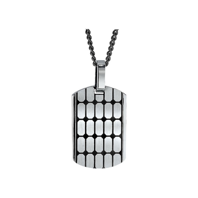 Stainless Steel Dog Tag with Black Enamel Cobblestone Design.