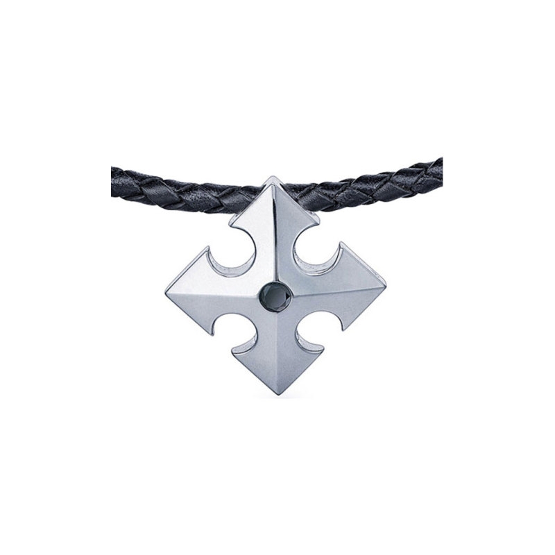 Sterling Silver and Round Brilliant Cut Black Diamond Gothic Design Necklace.