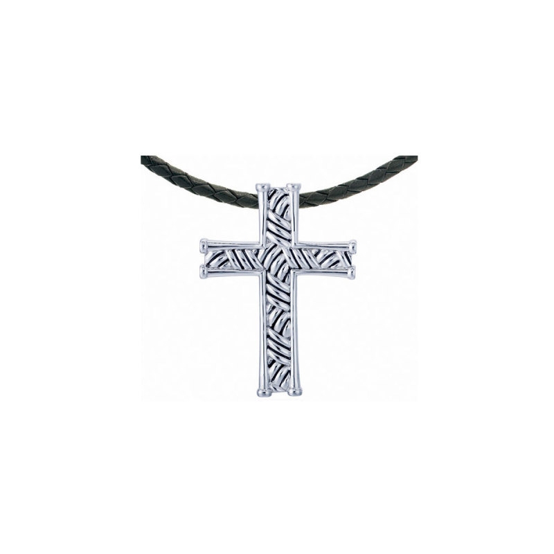 Solid Sterling Silver Cross Pendant with Black Oxidized Finish Weave Design Pendant