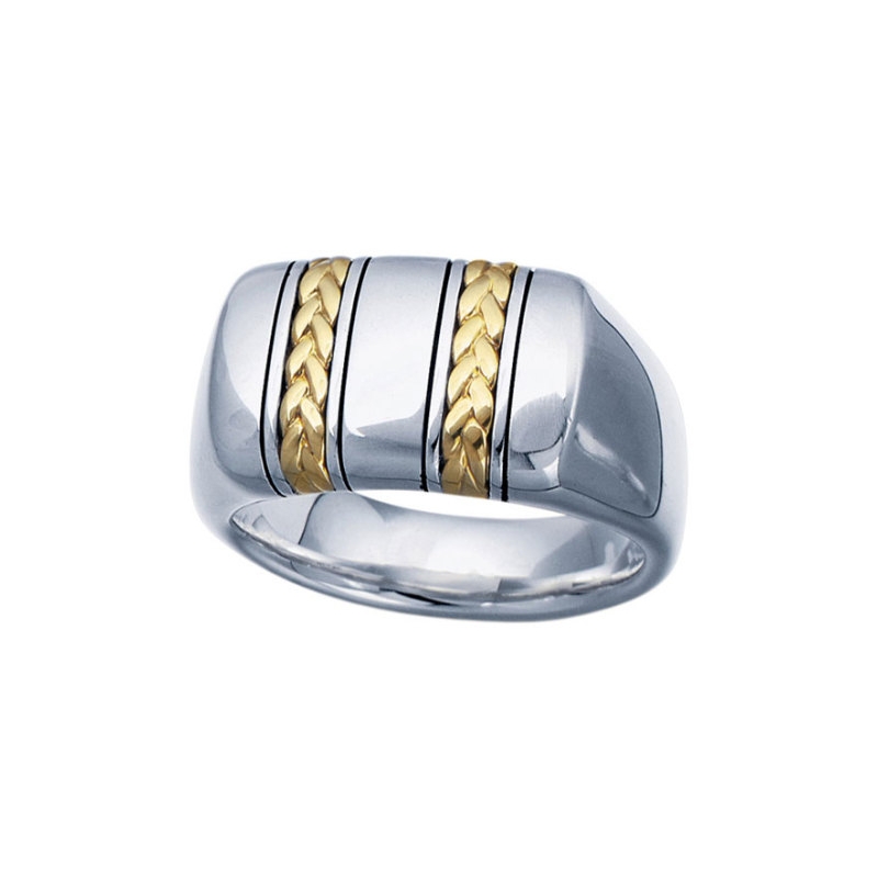 Solid Sterling Silver Signet Ring Design with 18K Yellow Gold Braid Inlay