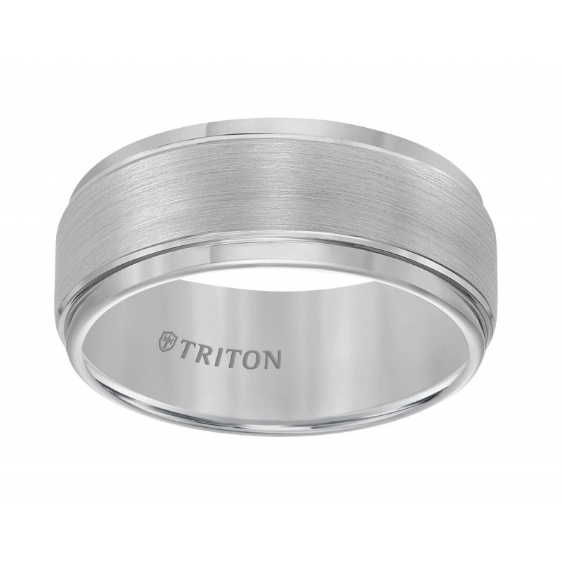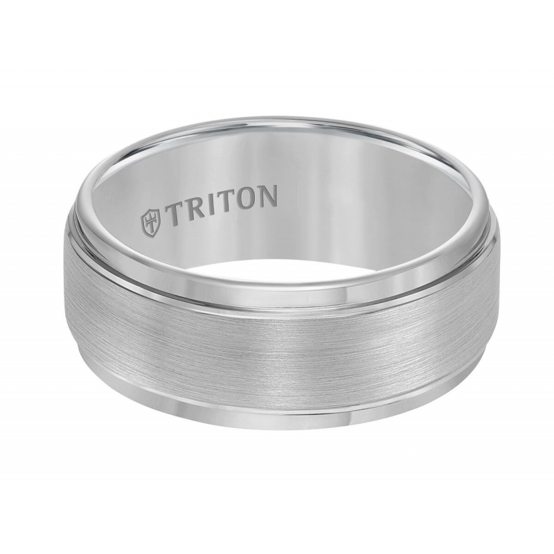 9mm Tungsten Carbide Brush Finish Flat with Bright Step Edge Comfort Fit Band.