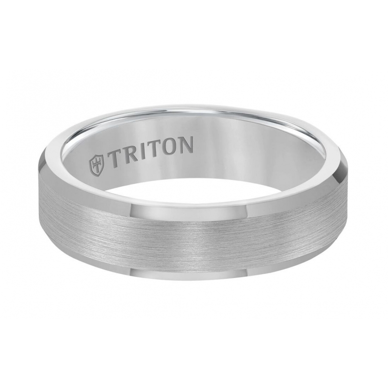 6mm Tungsten Carbide Brush Finish Flat with Bright Step Edge Comfort Fit Band.