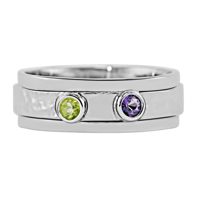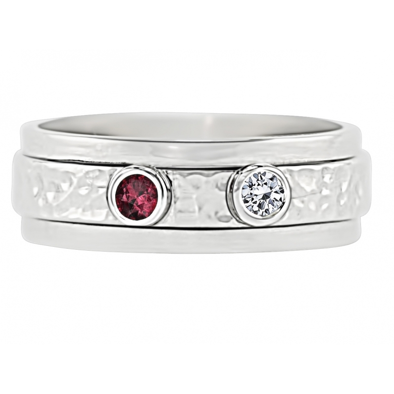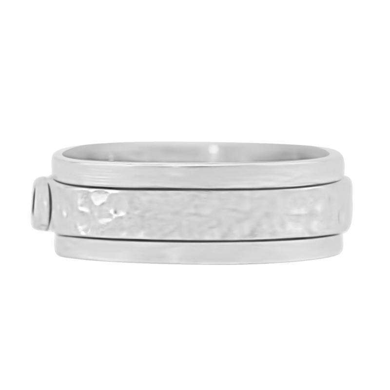 Two bezel settings , raised center and  tension set with a soft hammer finish.